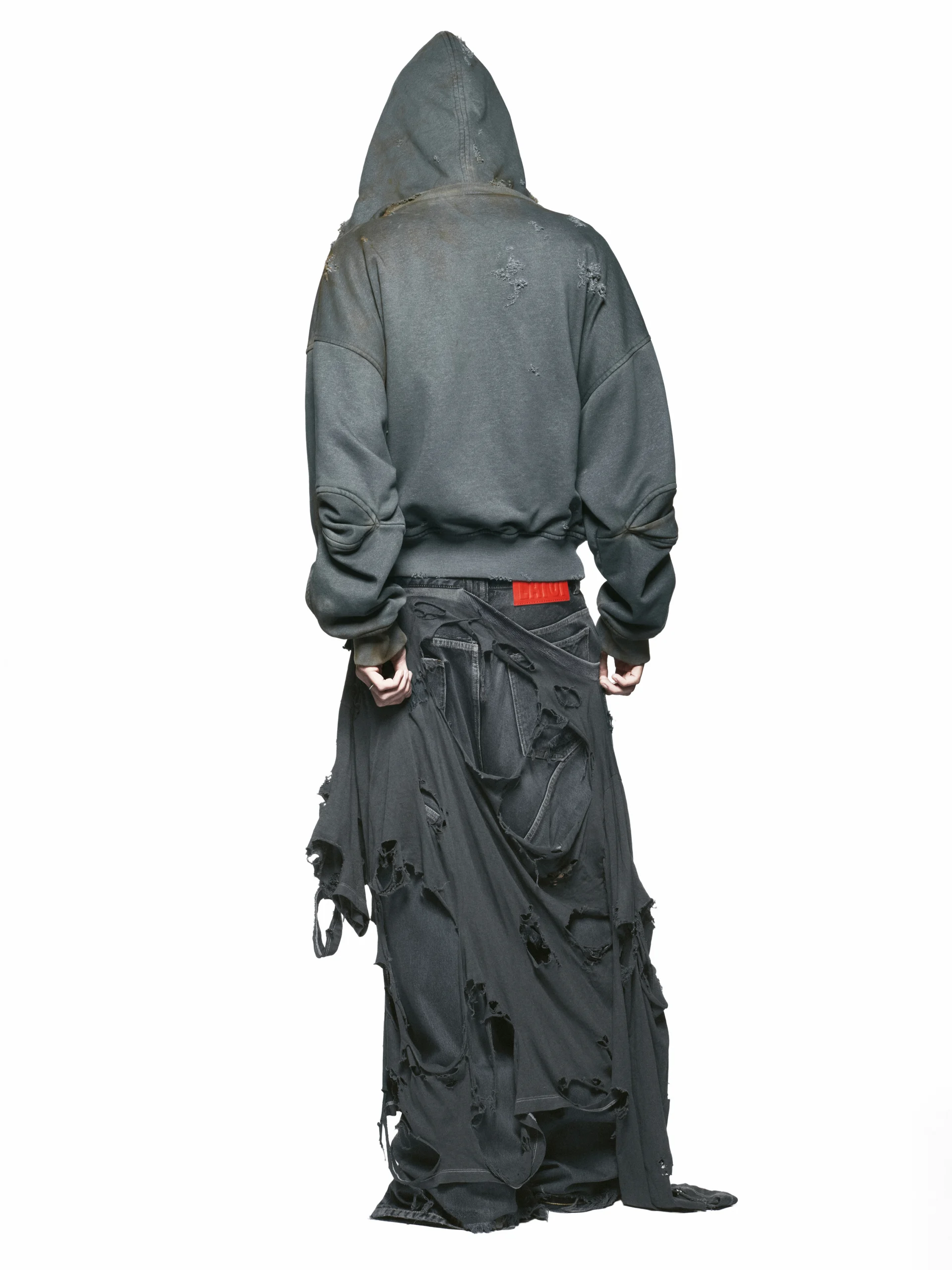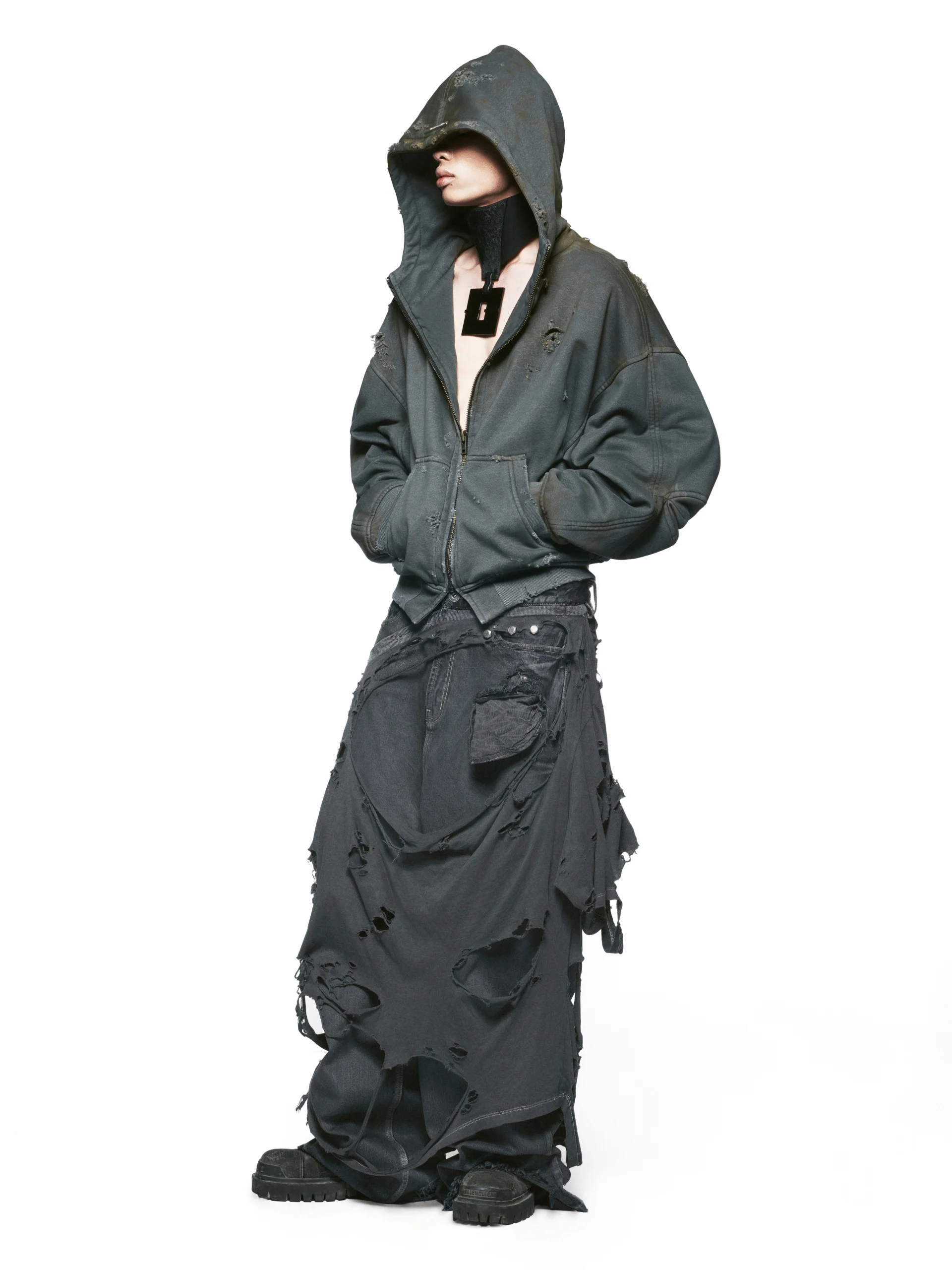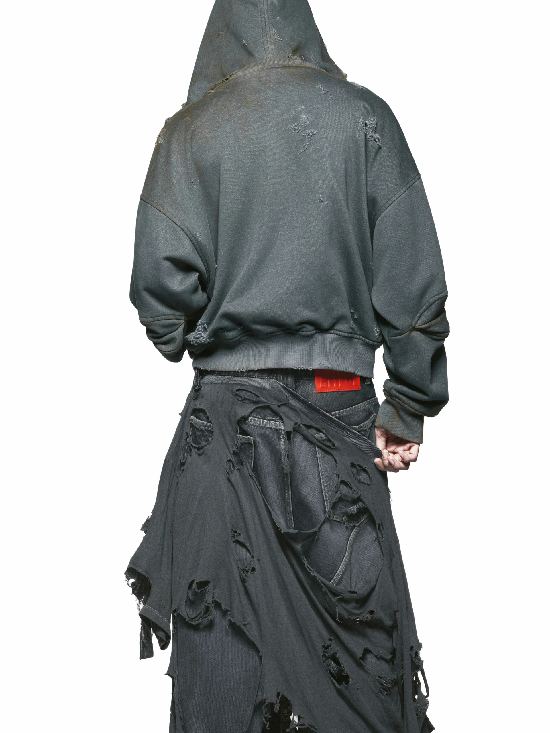 – Hand-applied paint and stain marks create an intentionally raw, lived-in finish. Variations in placement, scale, and intensity may occur.