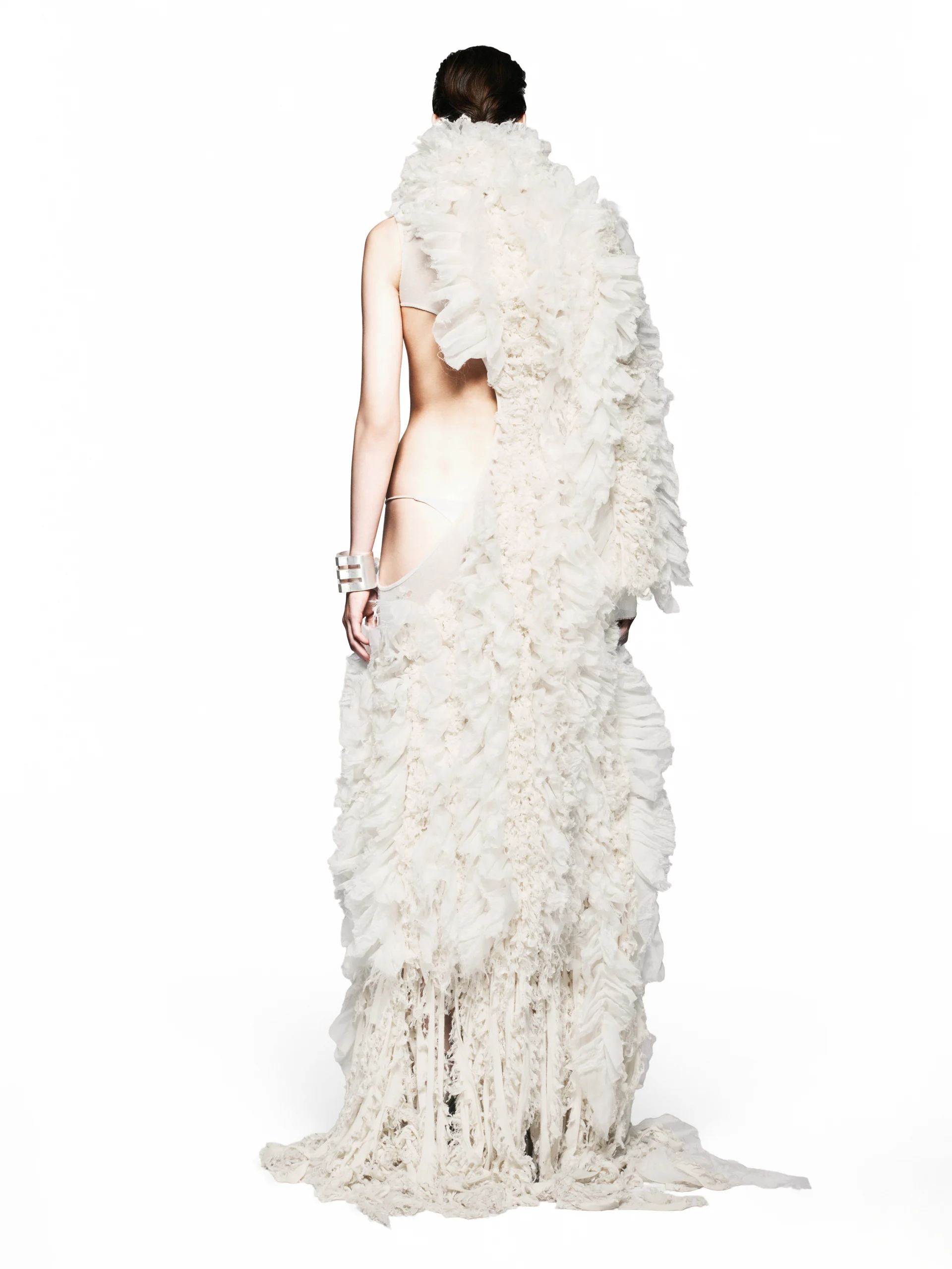 – A long asymmetrical dress featuring a single sleeve and a sculpted waist cut-out.