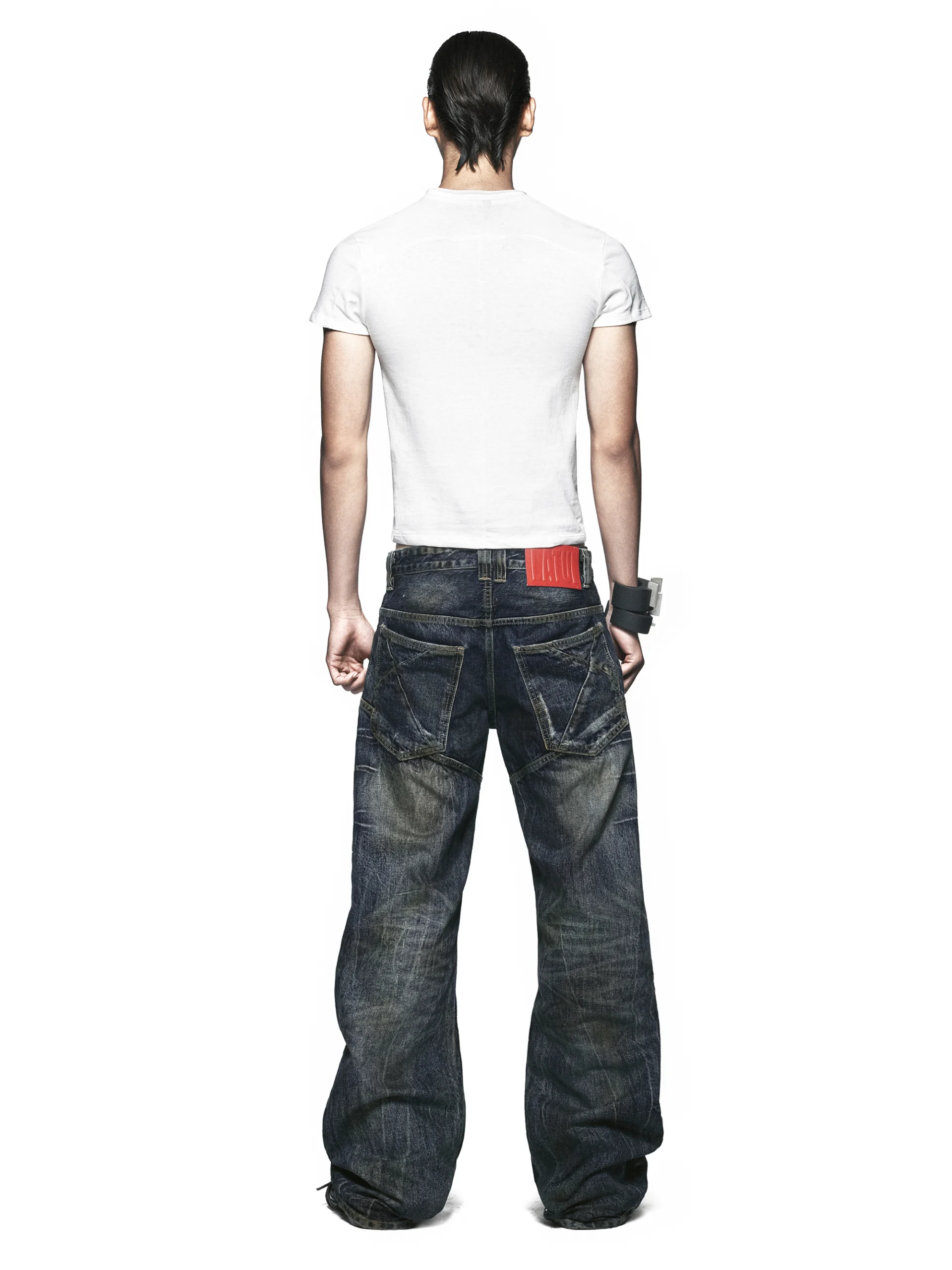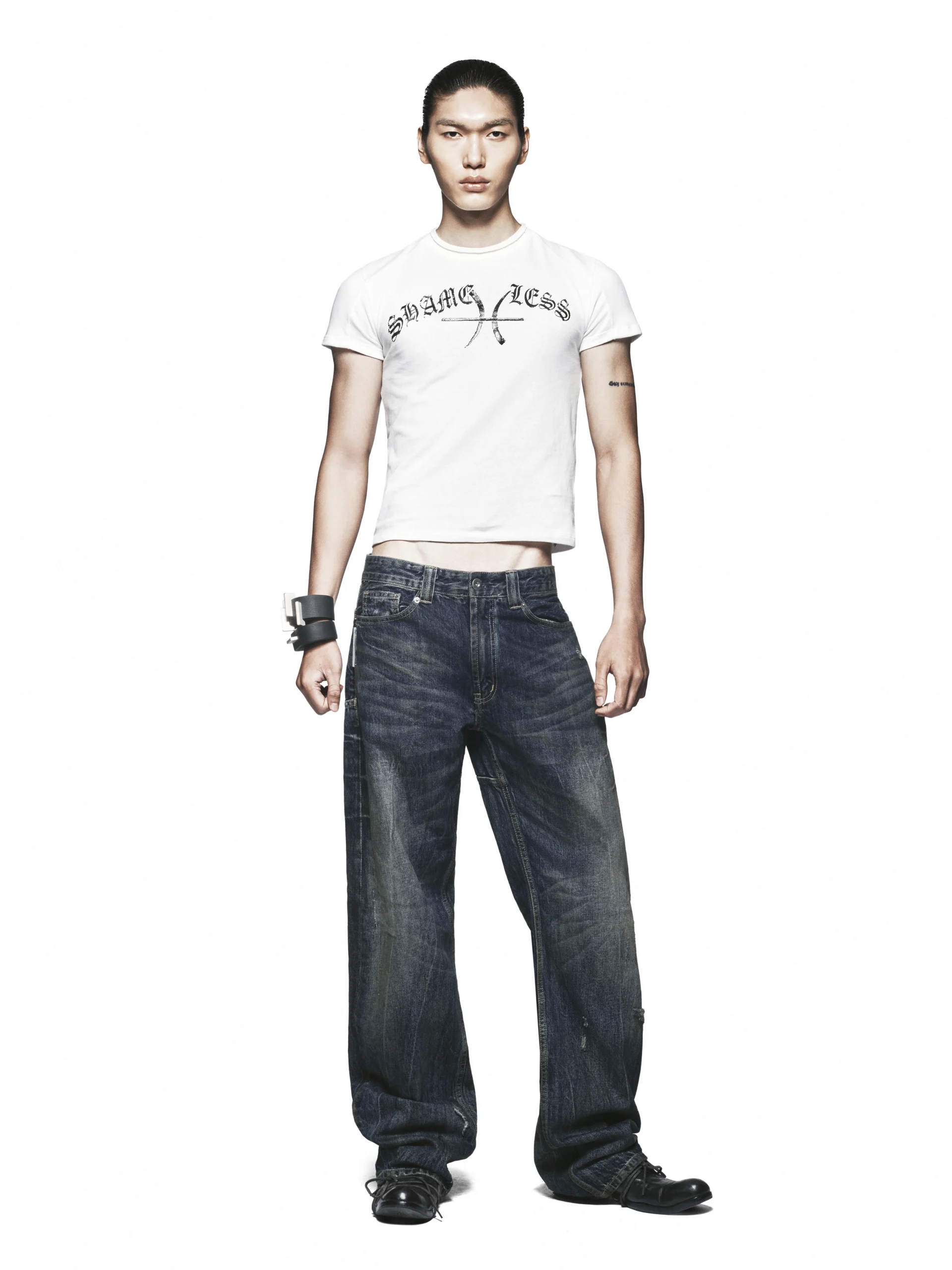 – Hand-applied paint and stain marks create an intentionally raw, lived-in finish. Variations in placement, scale, and intensity may occur.